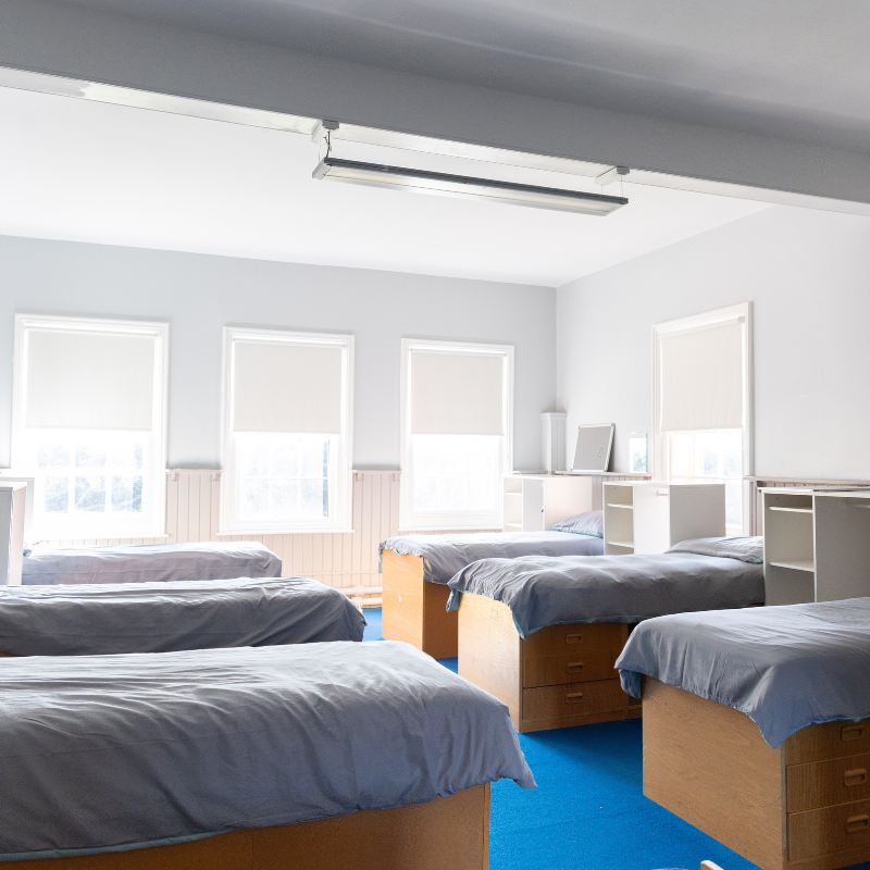 Sur le collège, en chambres de 3 à 5 lits avec sanitaires à l’étage.