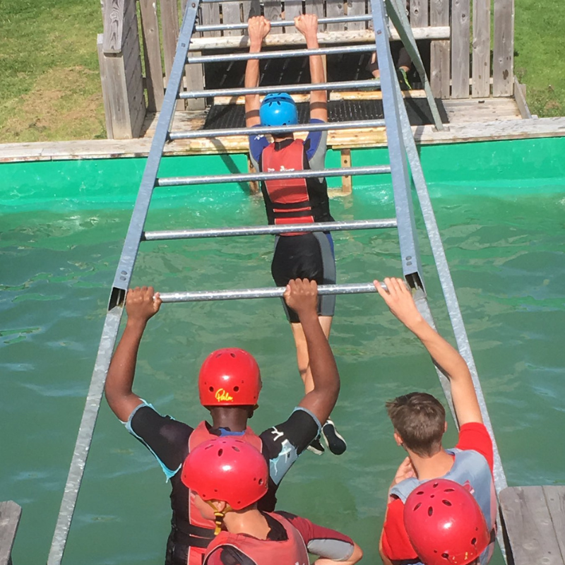 - Activités en plein air variées. Ex : construction de radeaux, parcours dans les arbres, escalade, tyrolienne, laser game, vélo, descente en rappel, tir à l’arc…