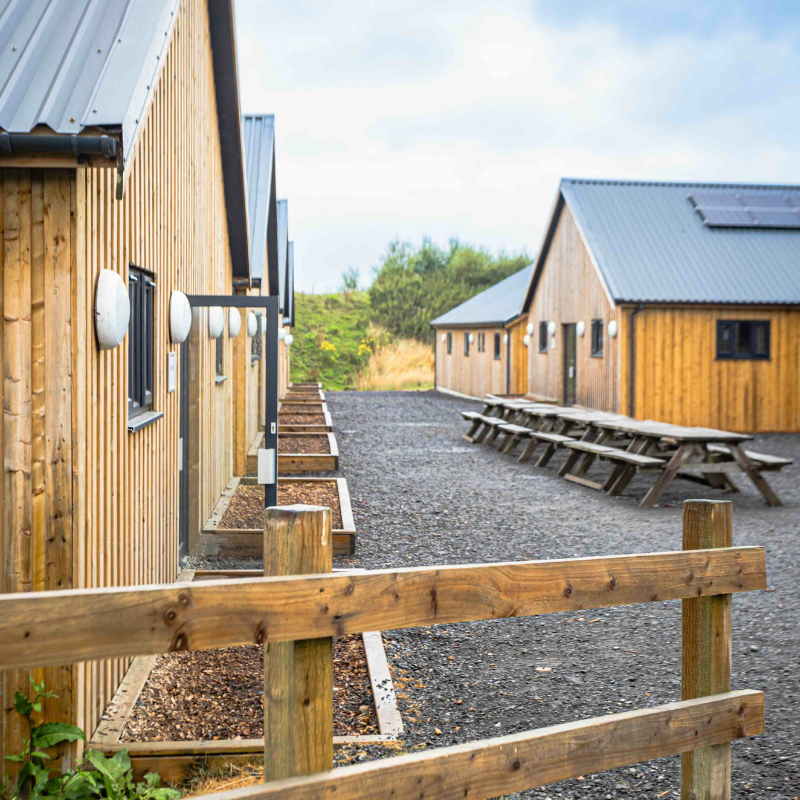 - Dans une résidence, en chambre partagée dans un chalet de 6 places avec sanitaire partagé.