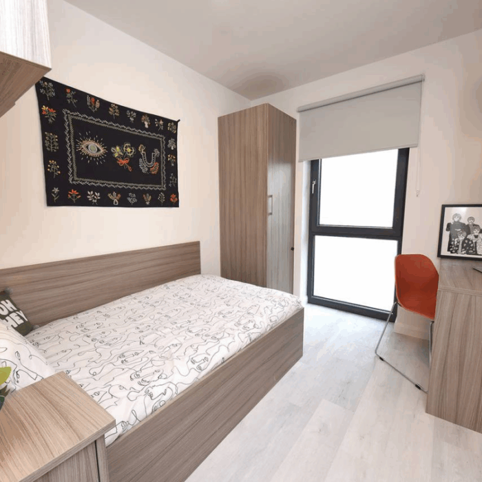 - En résidence, en chambre individuelle avec sanitaire privés dans un appartement de 4 ou 5 chambres.